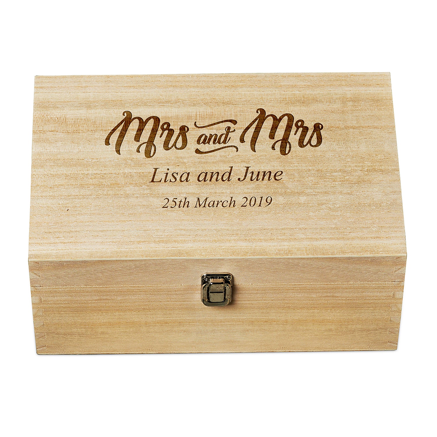 Beautiful Wedding or engagement Gift. or a personal keepsake Made from wood this box is an ideal way to store those important keepsakes. The box is hinged for easy opening and comes with a clip closure. Dimensions: 30 x 20 x 13 cm (11.8 x 7.9 x 5.1 inches) The personalisation is done with a laser engraver directly onto the wood giving it a lovely finish. All you have to do is add a message during checkout. Please state: 1. The name you require 2. The date you require if needed should you miss that then please message us through your order.
