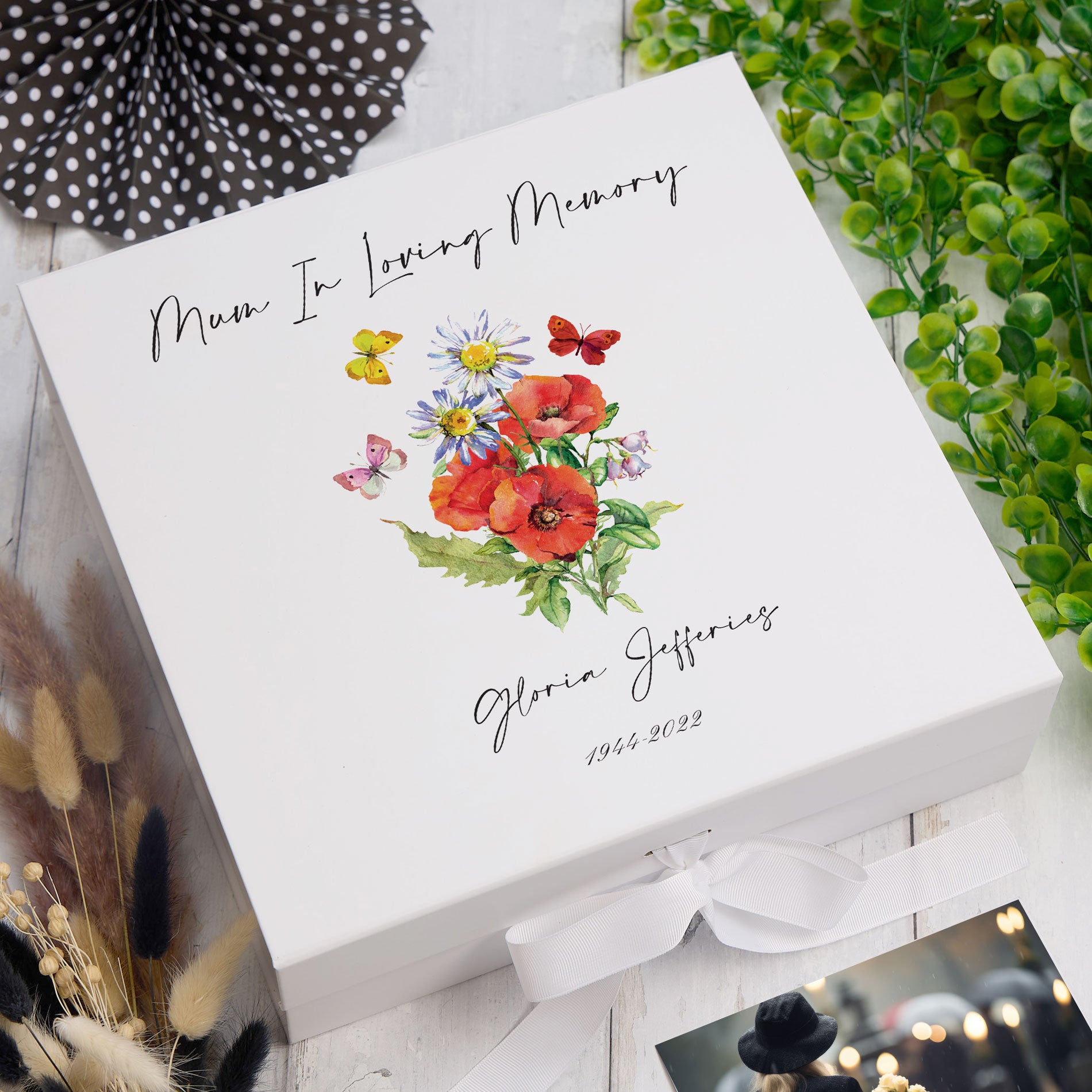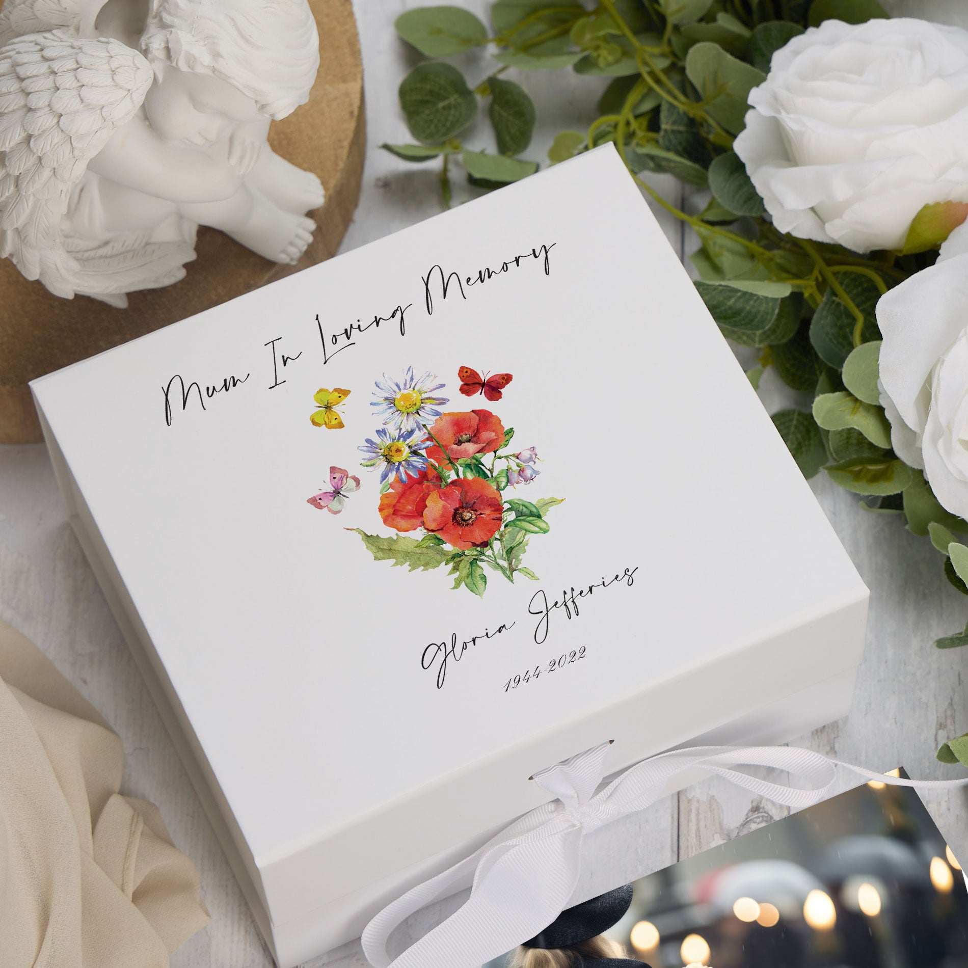 The personalised print on this luxury box is raised slightly to create a stunning embossed-style feature. The box itself is sturdy and durable - made from a luxurious 1200gsm white matt laminated rigid board. Available in two sizes and used as a gift box, as a memory box or as part of a hamper. Medium 17cm x 17cm x 8cm Large 30cm x 30cm x 9cm It can be used as a gift box, as a memory box or as part of a hamper.