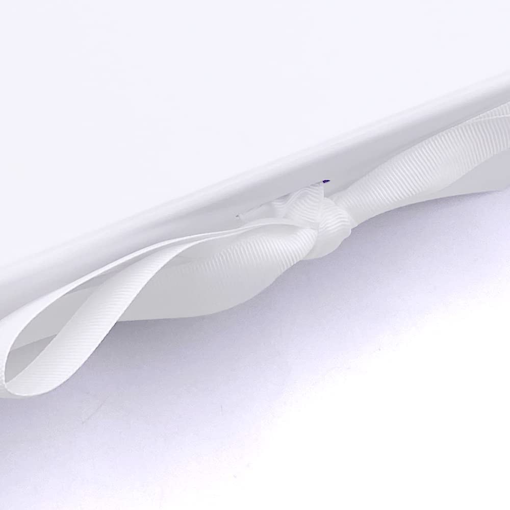Gorgeous luxury personalised printed rigid card gift box, with lid that has a magnetic closure and is tied with a grosgrain ribbon. The personalised print on this luxury box is raised slightly to create a stunning embossed-style feature. The box itself is sturdy and durable - made from a luxurious 1200gsm white matt laminated rigid board.