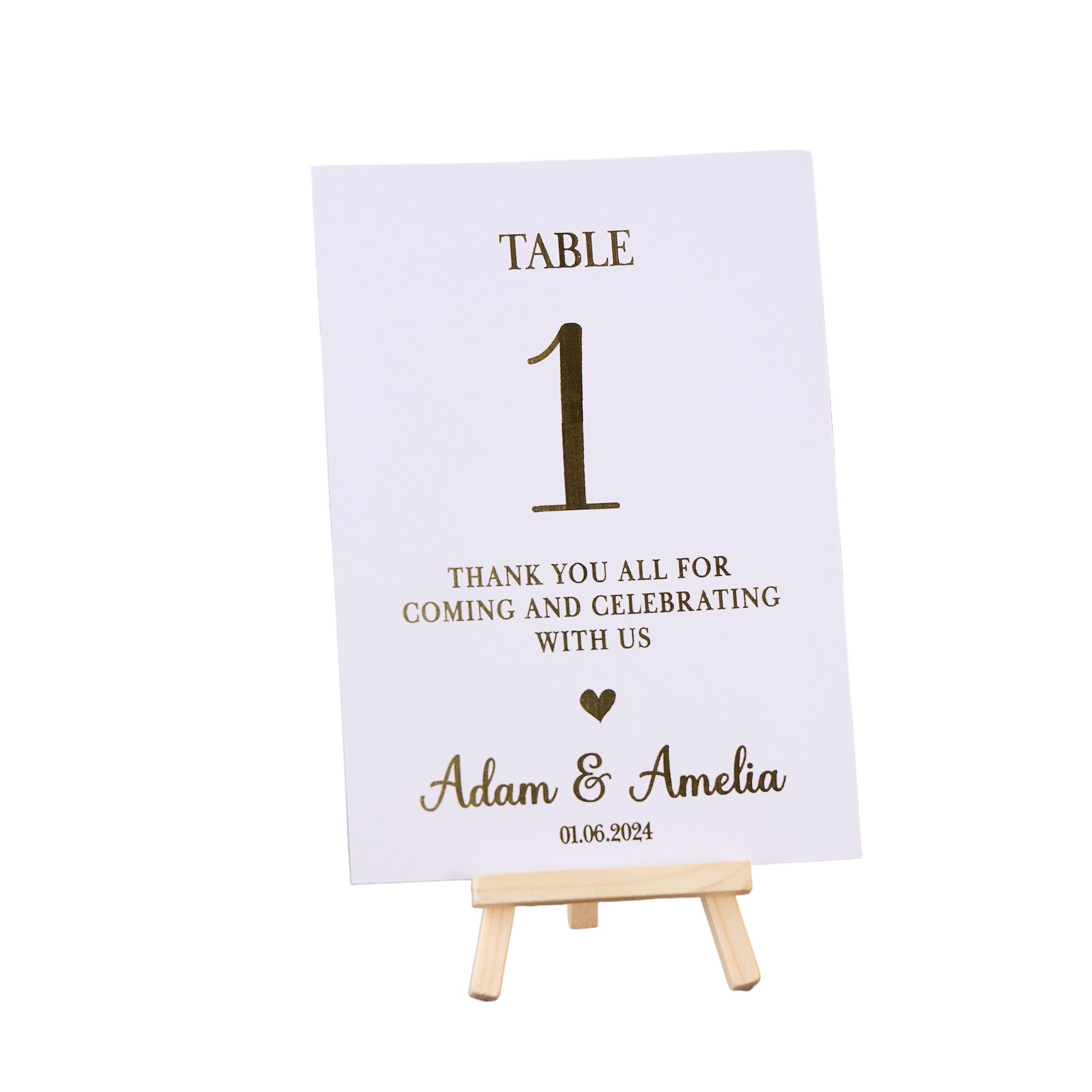 Highlight your special day with a personalized touch! This unique table décor features a shimmering gold foil design and a glowing stick that adds a romantic ambiance to your wedding.