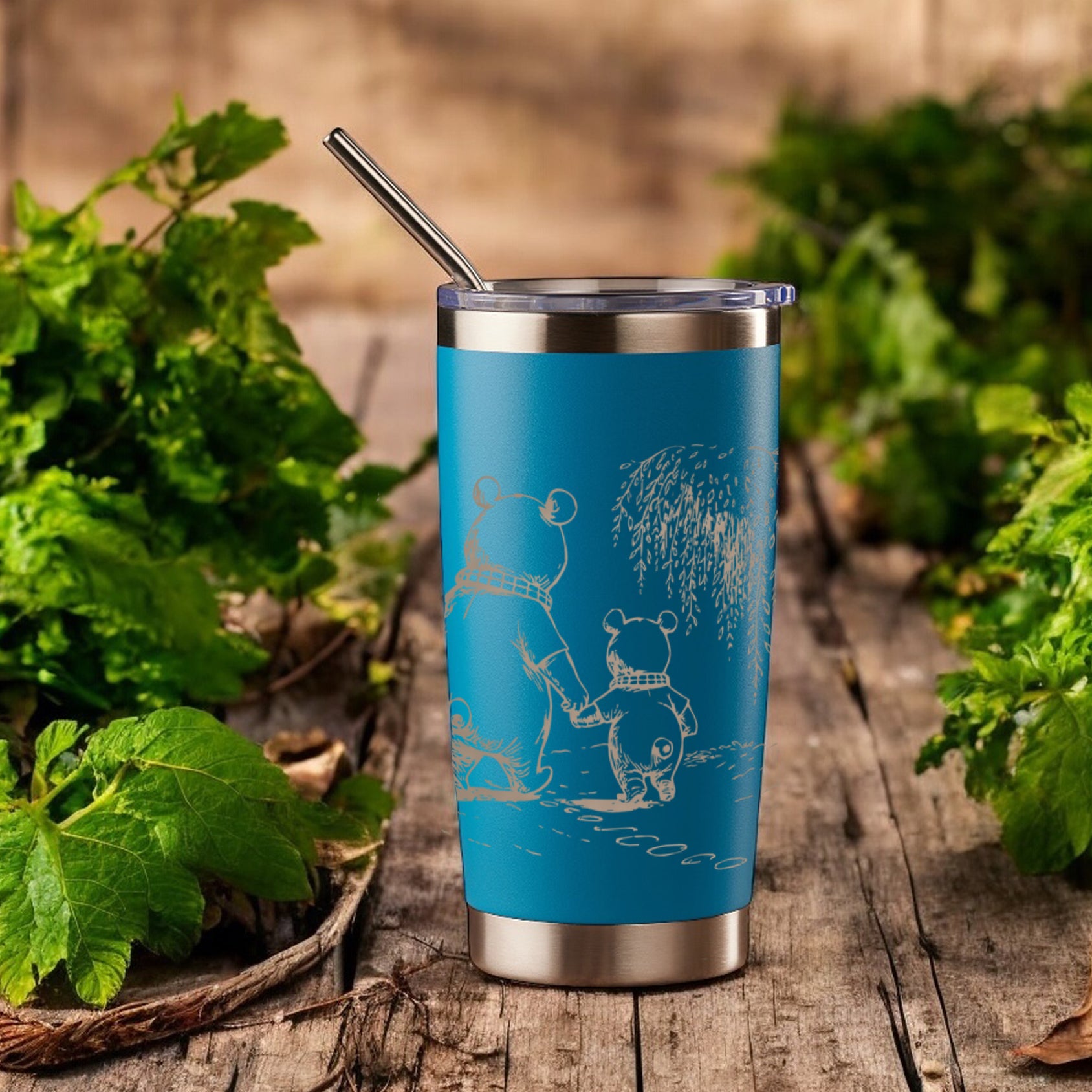 Engraved Thermal Travel Mug for Teachers, Personalised with Bears and a Thoughtful Message Let's save the earth...