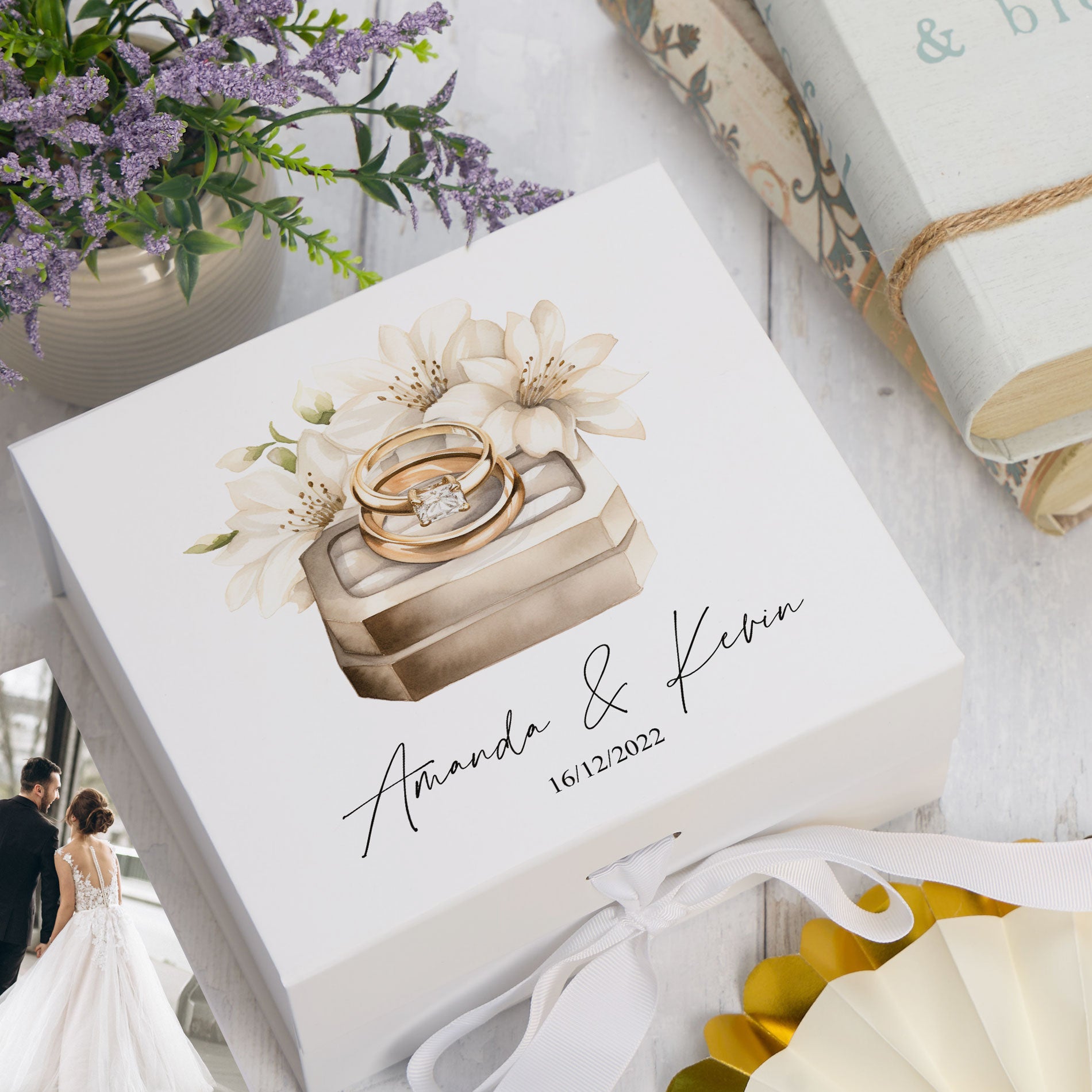 Personalised Wedding Box With Floral Ring Box Design and Ribbon Closure
