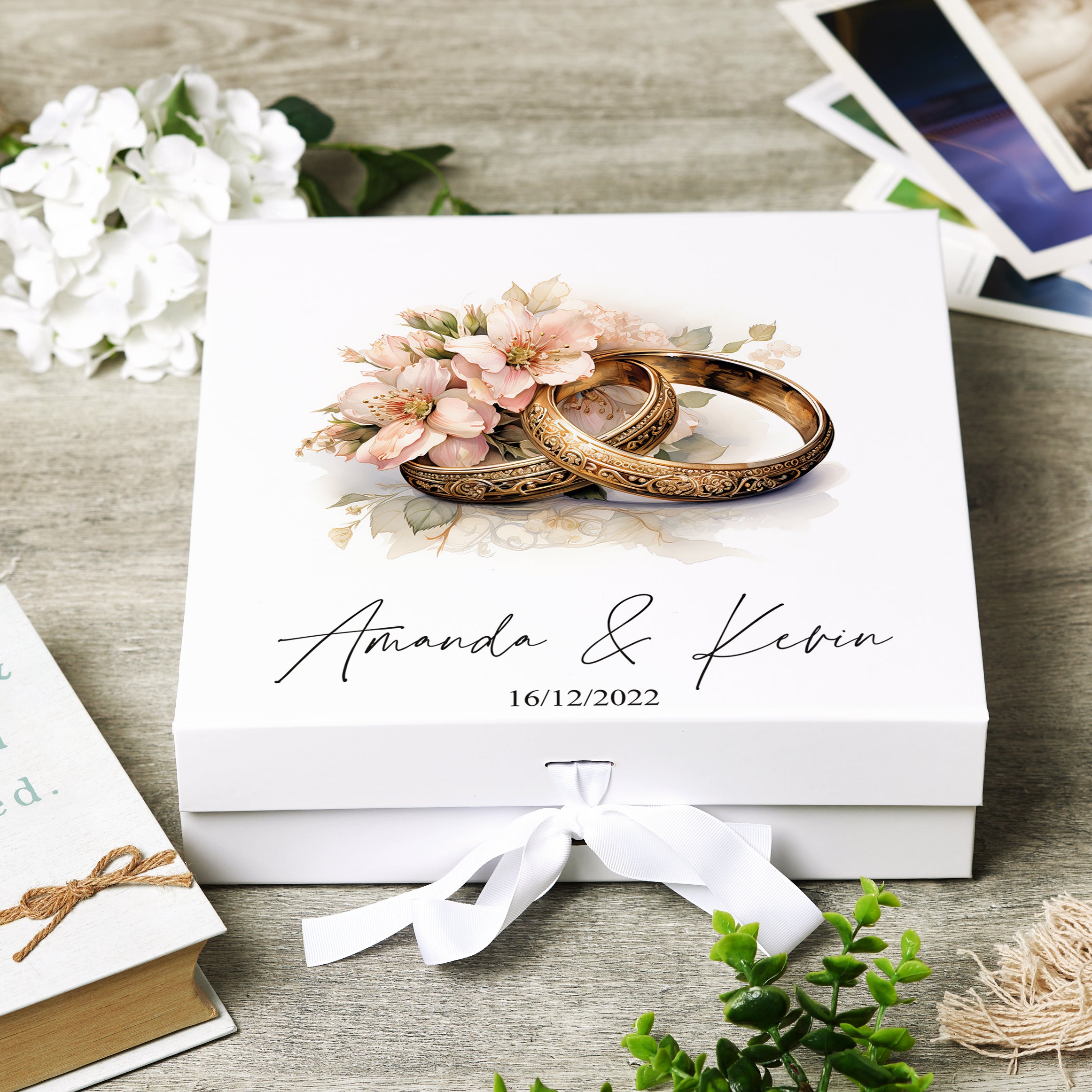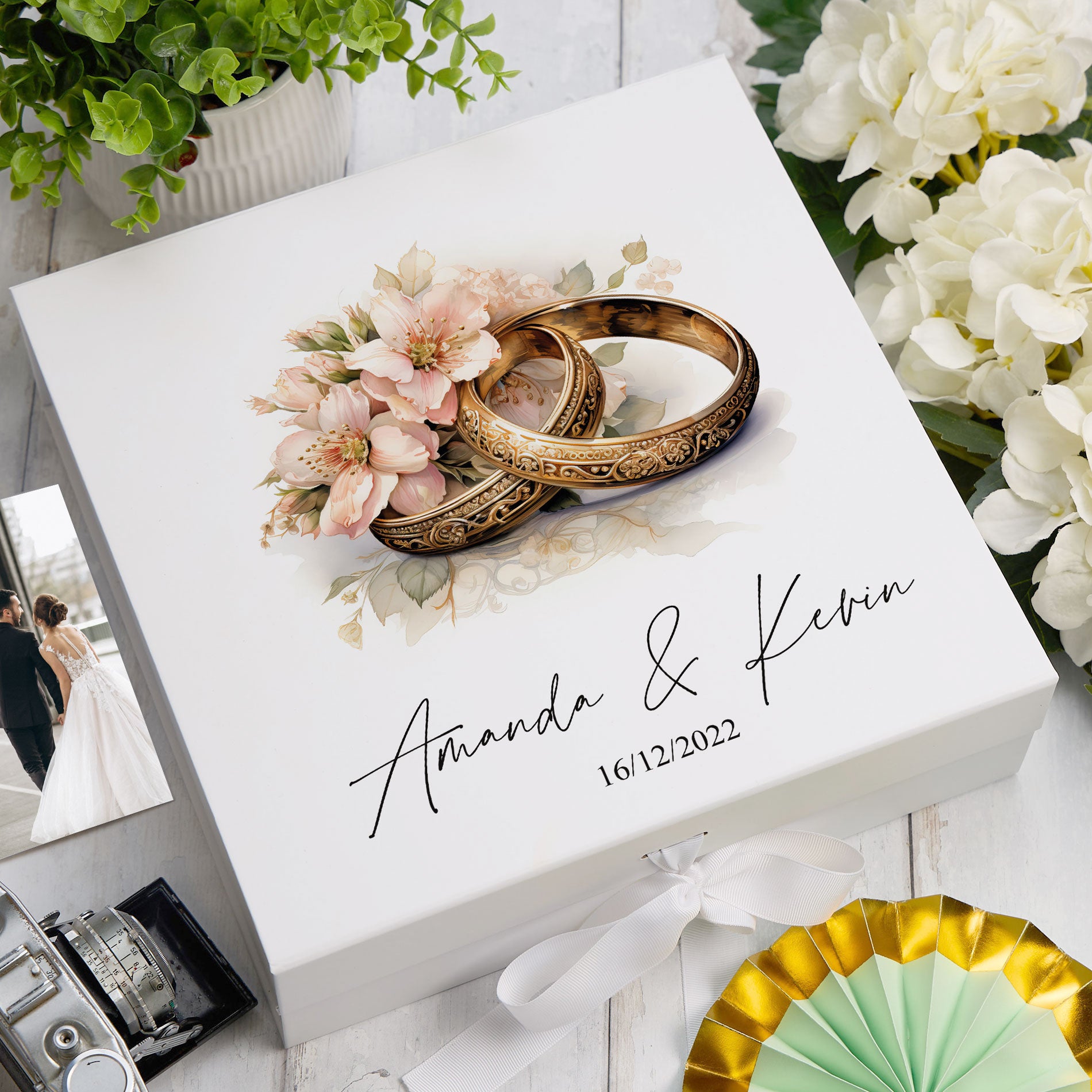 Personalised Wedding Box With Rings Design and Ribbon Closure