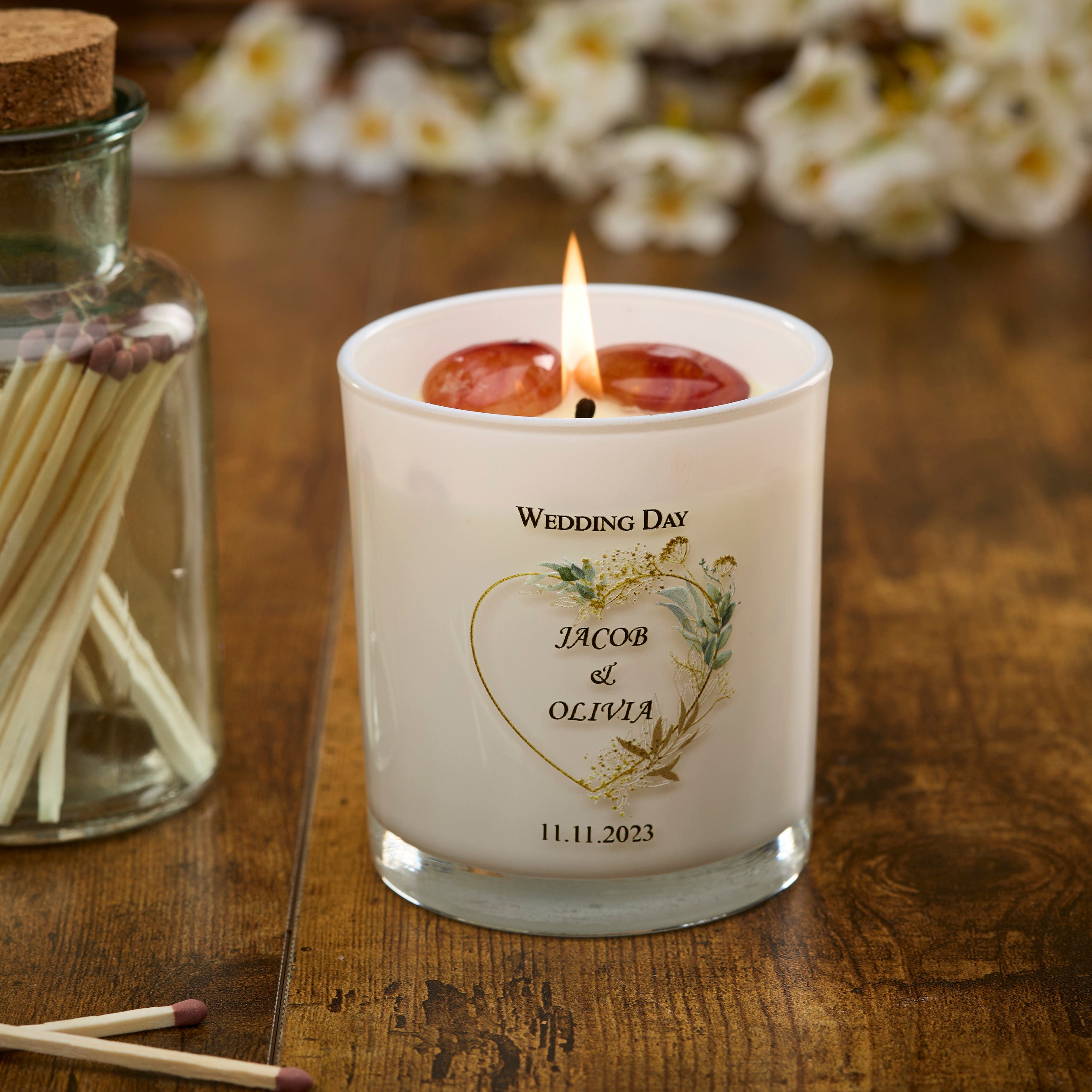 Personalised Wedding Day Candle Gift With Green and Gold Heart