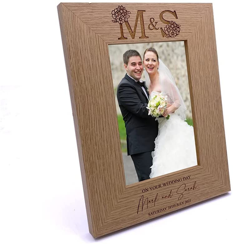 Personalised Wedding Day Photo Frame Gift With Monogram Portrait