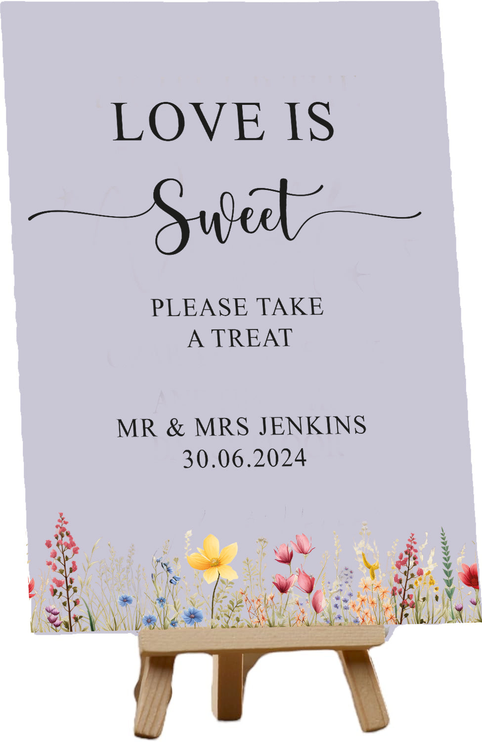 Personalised Wedding Love is Sweet Take a Treat Favours, Customised Table Sign