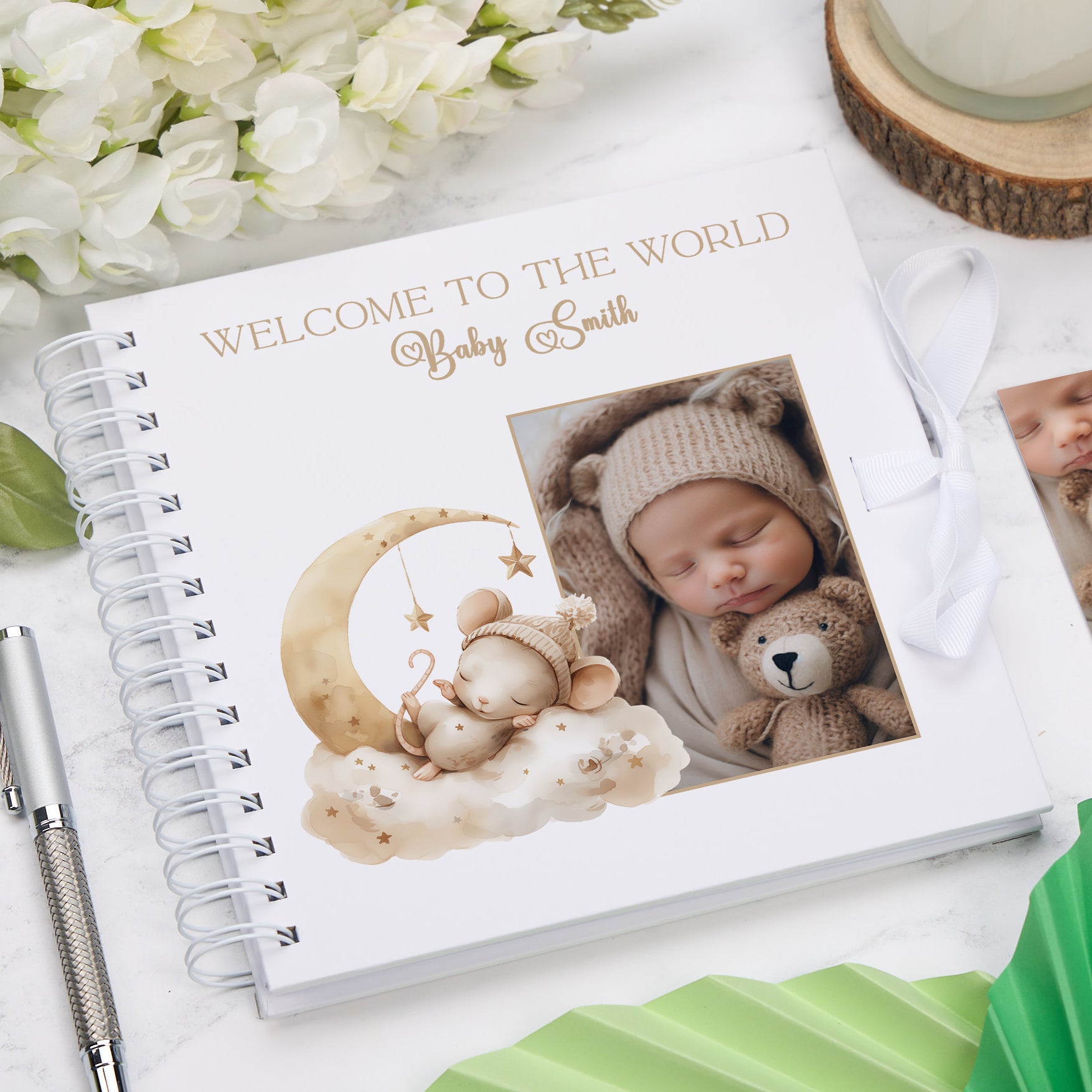 Celebrate the arrival of your little one with this personalised Welcome To The World Baby Scrapbook. Featuring an adorable sleeping animals design, this memory book offers a delightful and charming way to document your baby's earliest milestones and precious moments. Crafted as a special keepsake album, it allows you to store photos, notes, and mementos, creating a lasting tribute to your child's beginnings. Its personalised touch makes it a meaningful gift for new parents or a treasured keepsake for your family. This beautiful album combines functionality with sentiment, helping you preserve memories to cherish for years to come.