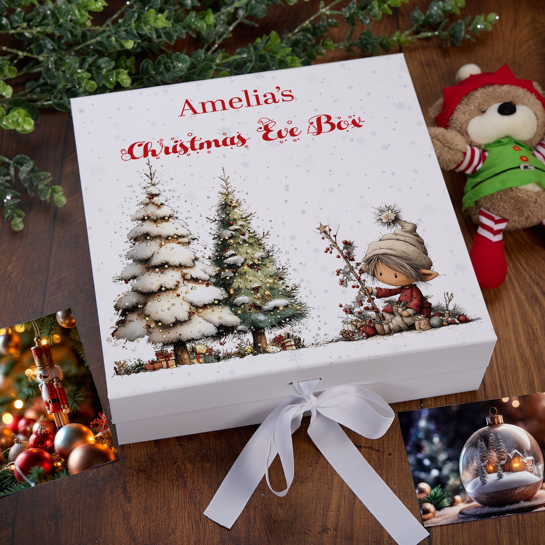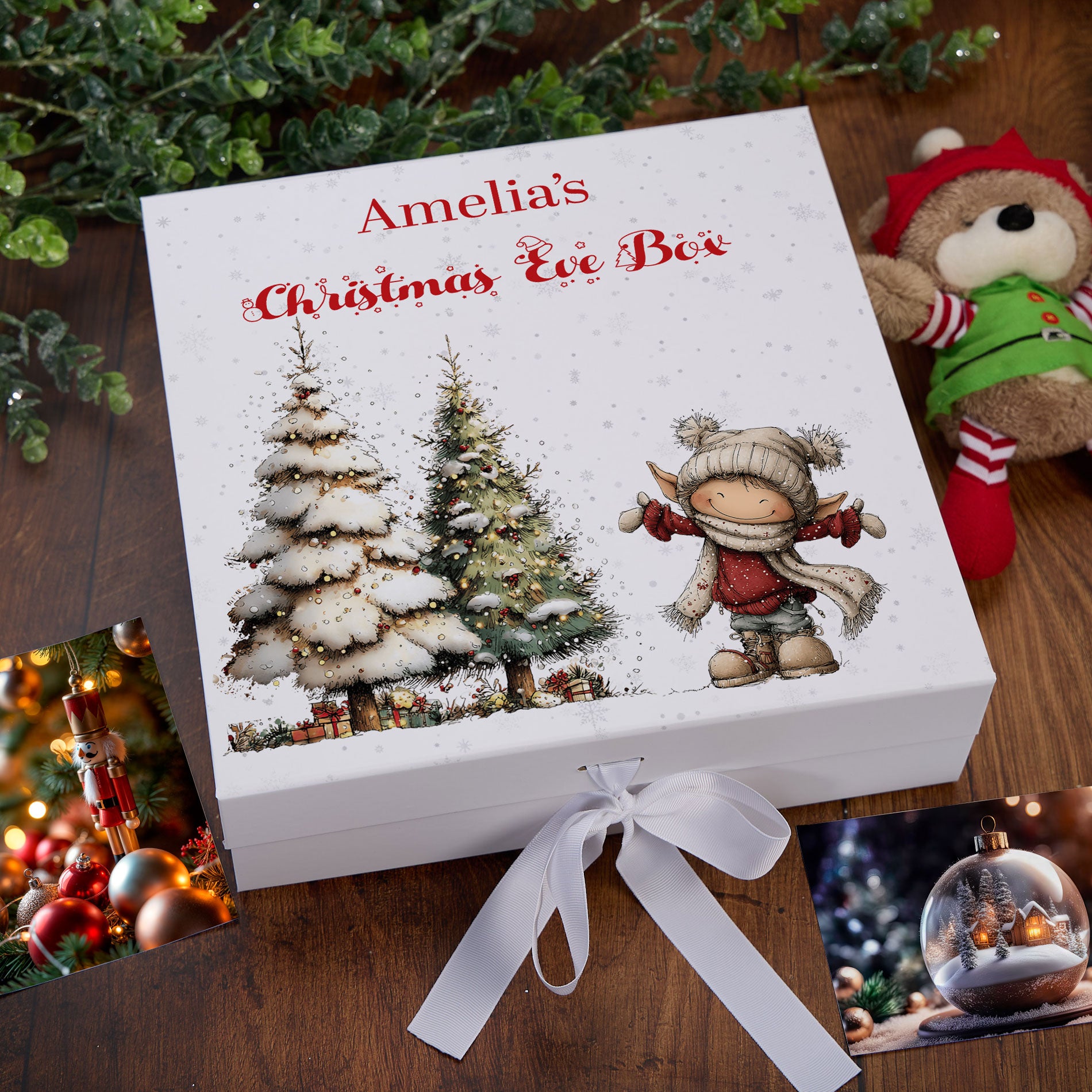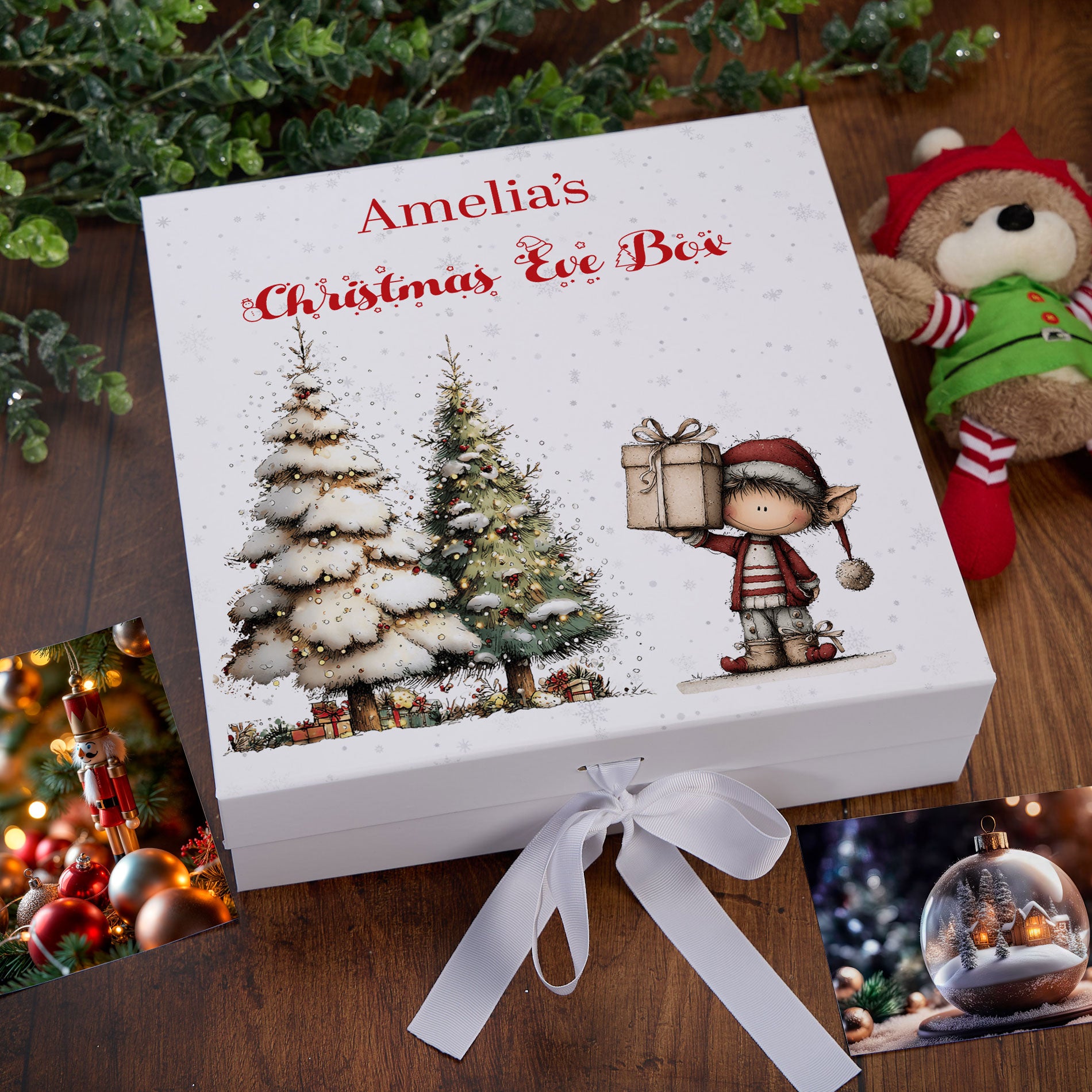 Create lasting Christmas memories with this personalised white gift box, adorned with delightful elf illustrations. An exceptional keepsake designed for storing your most treasured holiday moments and mementos, perfect for establishing cherished seasonal traditions. The elegant white finish complements any festive décor, whilst the customisation option allows you to add a personal touch that makes this box uniquely yours. Ideal for preserving Christmas Eve letters, photographs, ornaments, or sentimental keepsakes that hold special meaning for your family. Built to last, this durable storage solution becomes a cherished heirloom passed down through generations, transforming everyday moments into treasured memories.