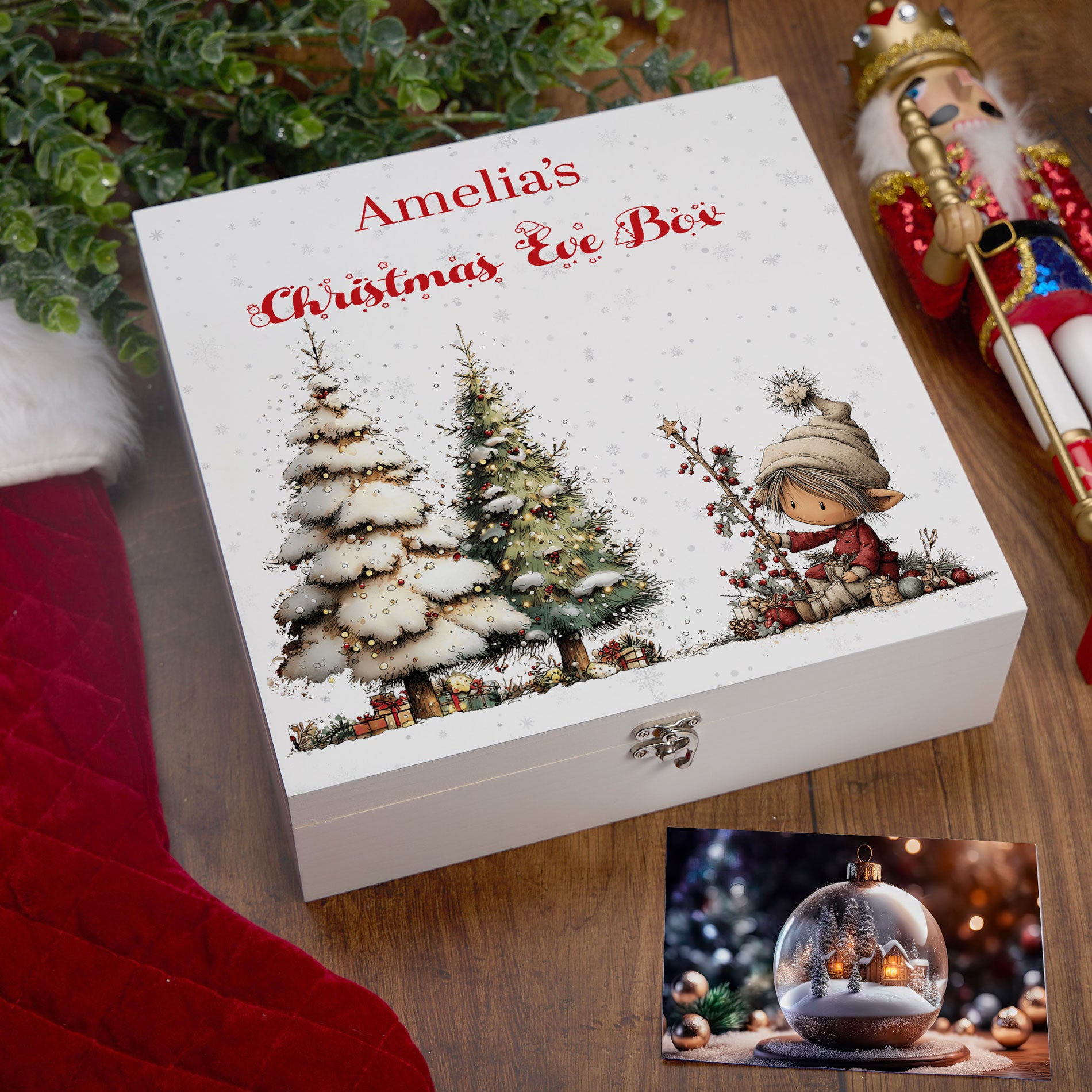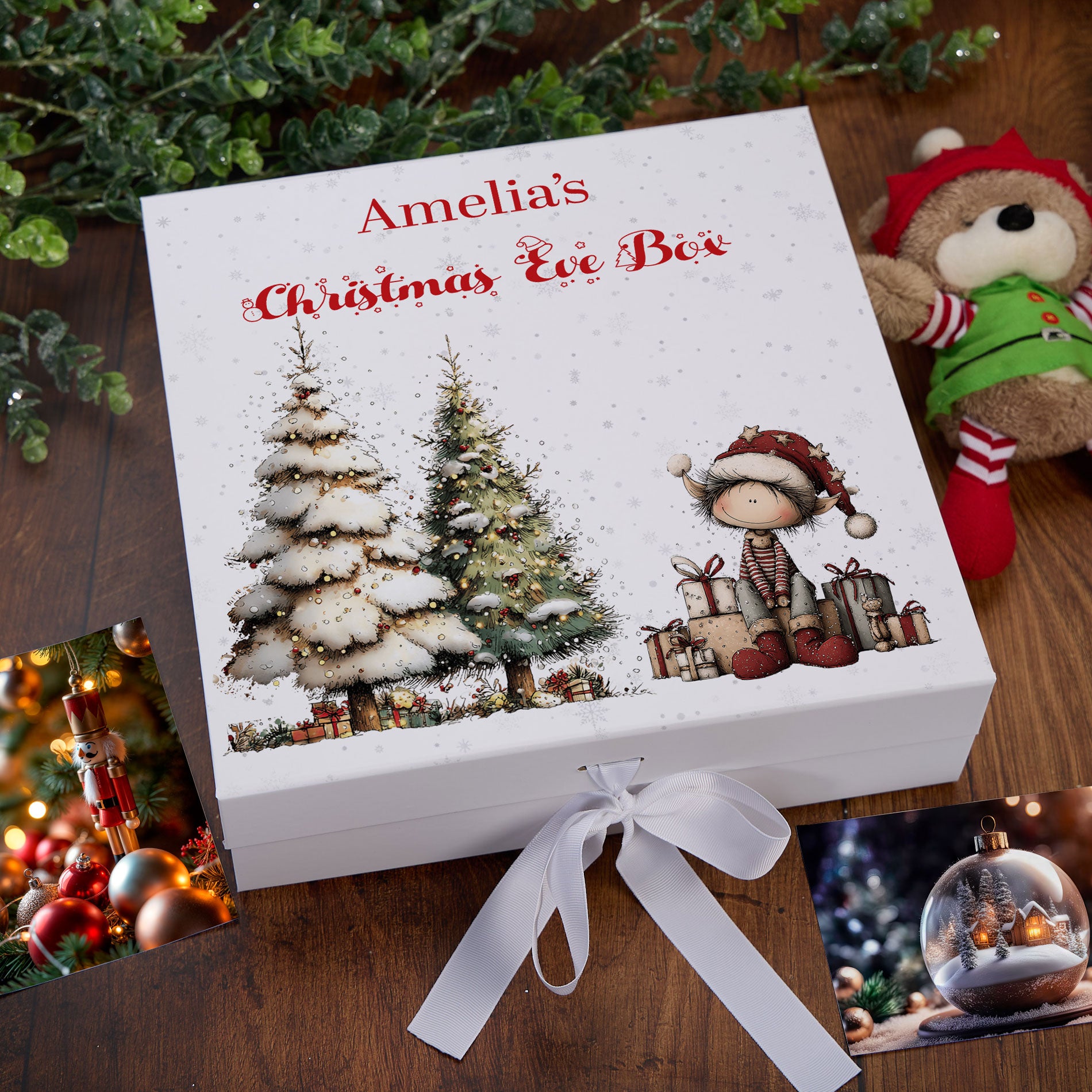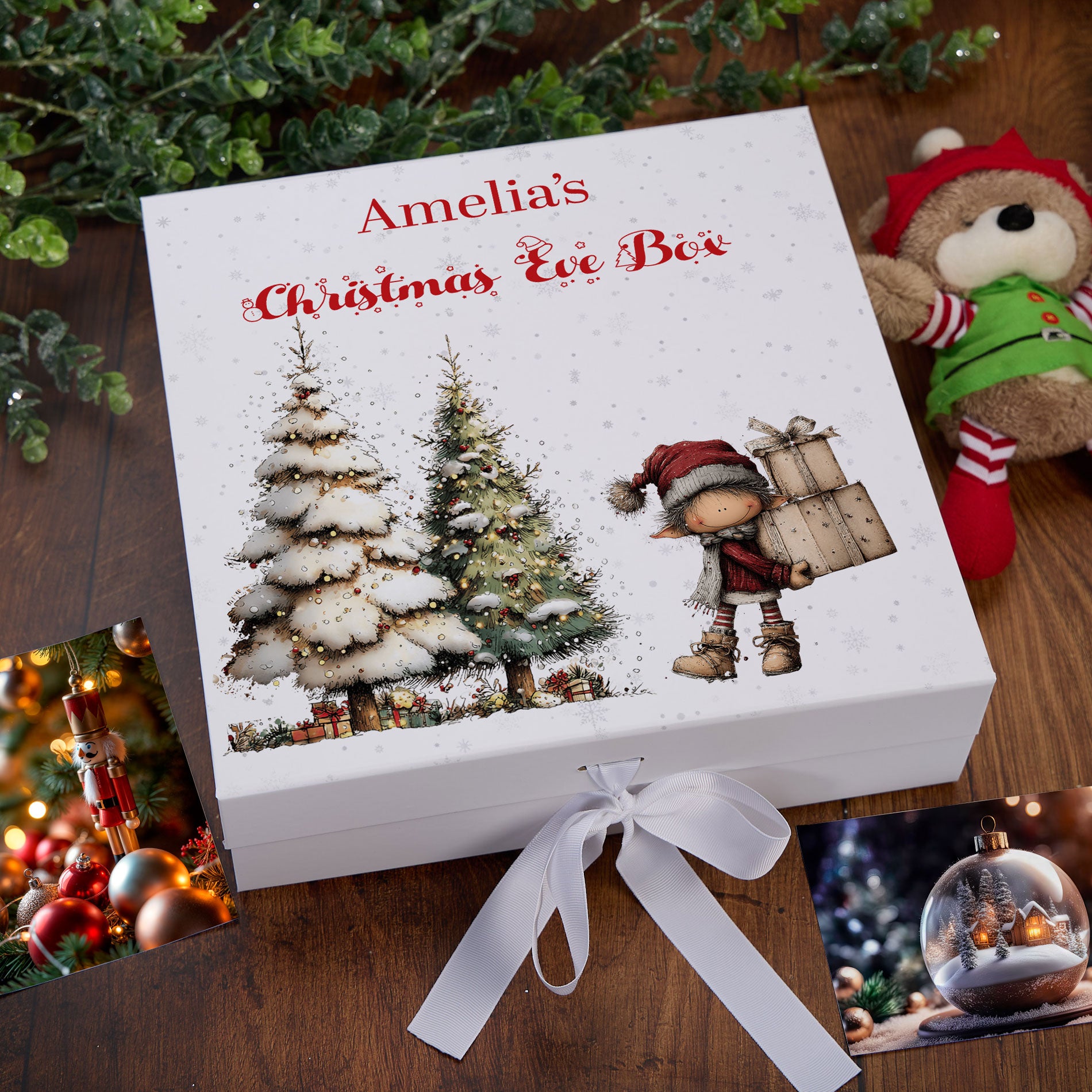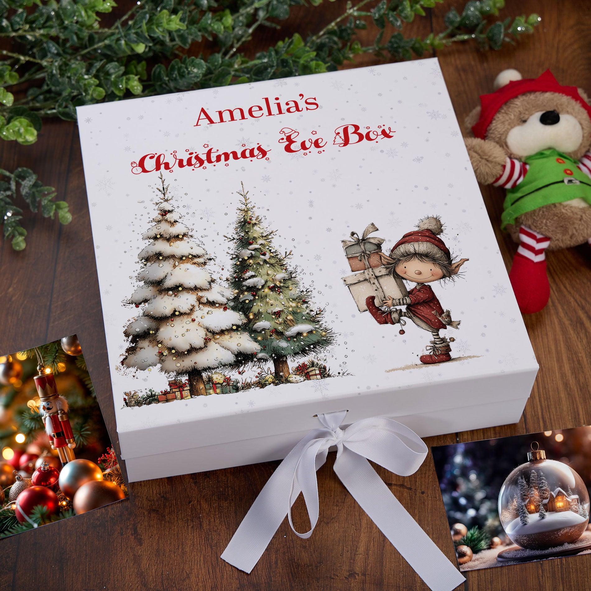 Create lasting Christmas memories with this personalised white gift box, adorned with delightful elf illustrations. An exceptional keepsake designed for storing your most treasured holiday moments and mementos, perfect for establishing cherished seasonal traditions. The elegant white finish complements any festive décor, whilst the customisation option allows you to add a personal touch that makes this box uniquely yours. Ideal for preserving Christmas Eve letters, photographs, ornaments, or sentimental keepsakes that hold special meaning for your family. Built to last, this durable storage solution becomes a cherished heirloom passed down through generations, transforming everyday moments into treasured memories.