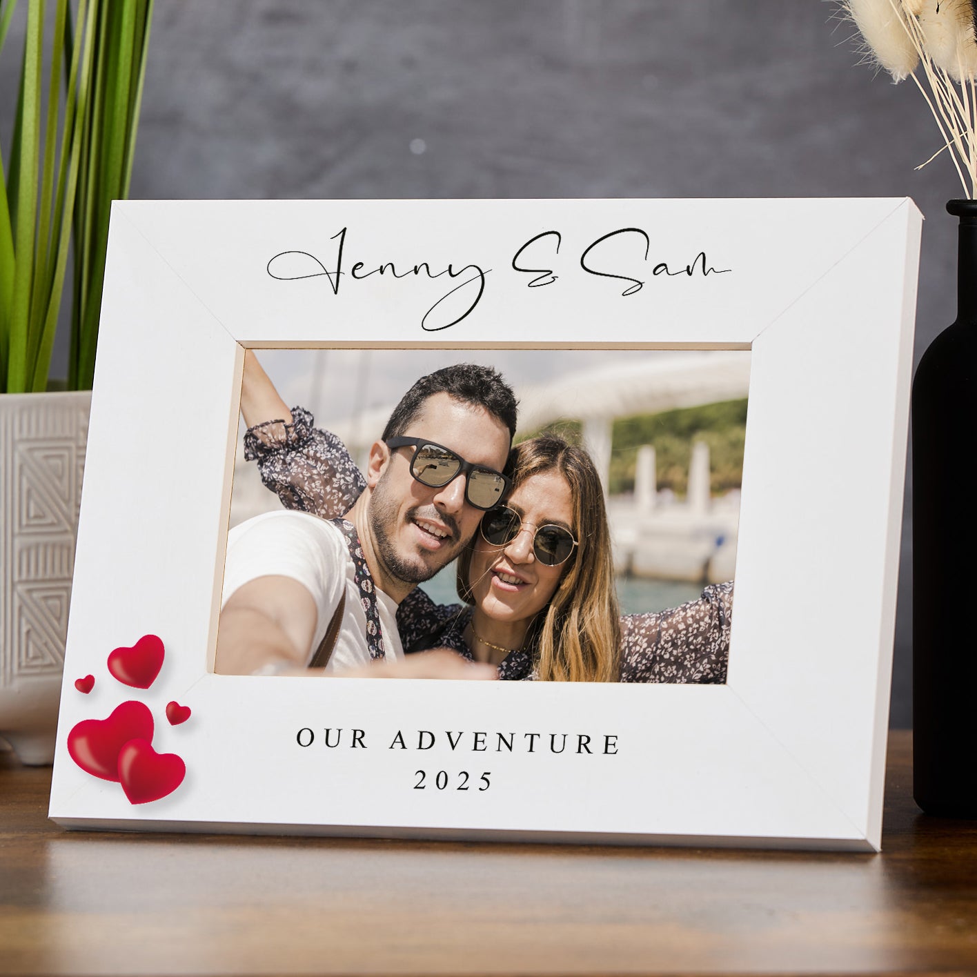 This personalised wooden white photo frame offers a timeless way to showcase your cherished memories. Customise it with your own wording to mark weddings, anniversaries, birthdays, or any special occasion, making it a meaningful keepsake. Crafted from quality wood with a clean white finish, it complements any décor while adding a personal touch. Ideal as a thoughtful gift or a unique addition to your home, this frame combines elegance with heartfelt sentiment.