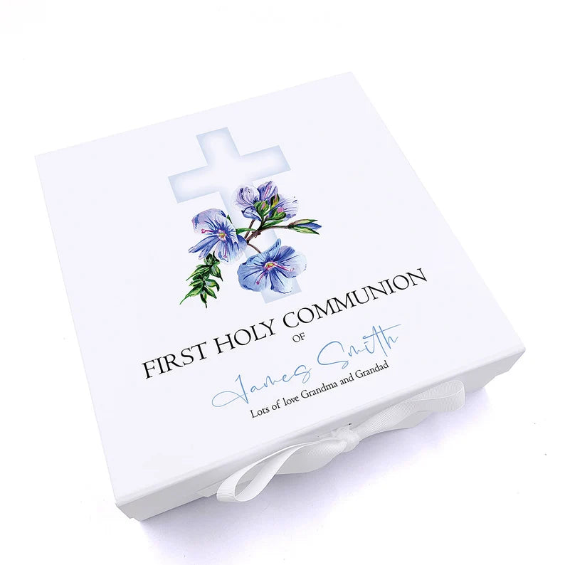 ukgiftstoreonline Personalised First Holy Communion Blue Cross Keepsake Memory Box Gift