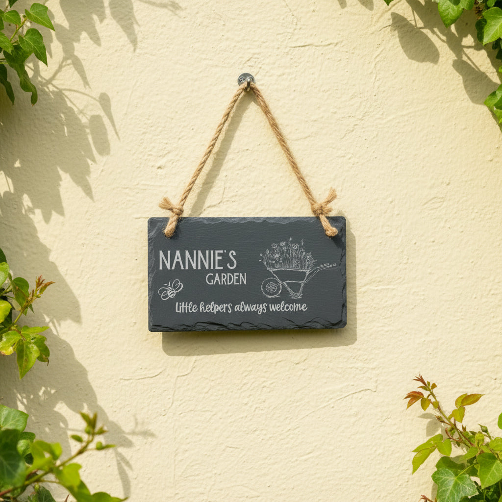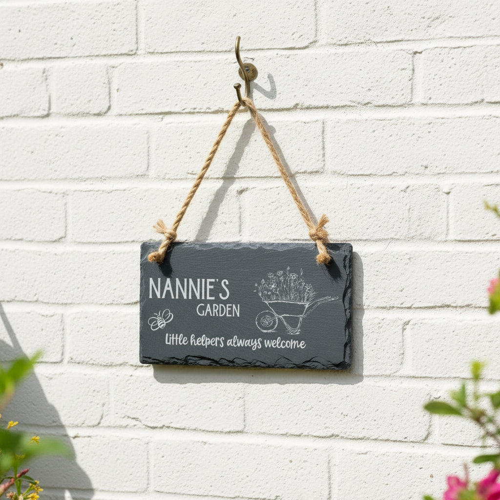 Personalised Garden Sign – Engraved Slate Plaque with Hanging Rope Add a personal touch to your outdoor...