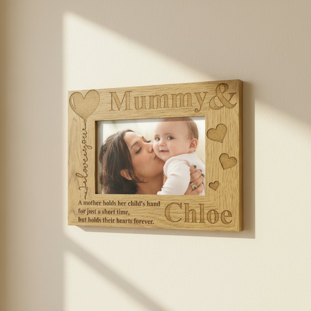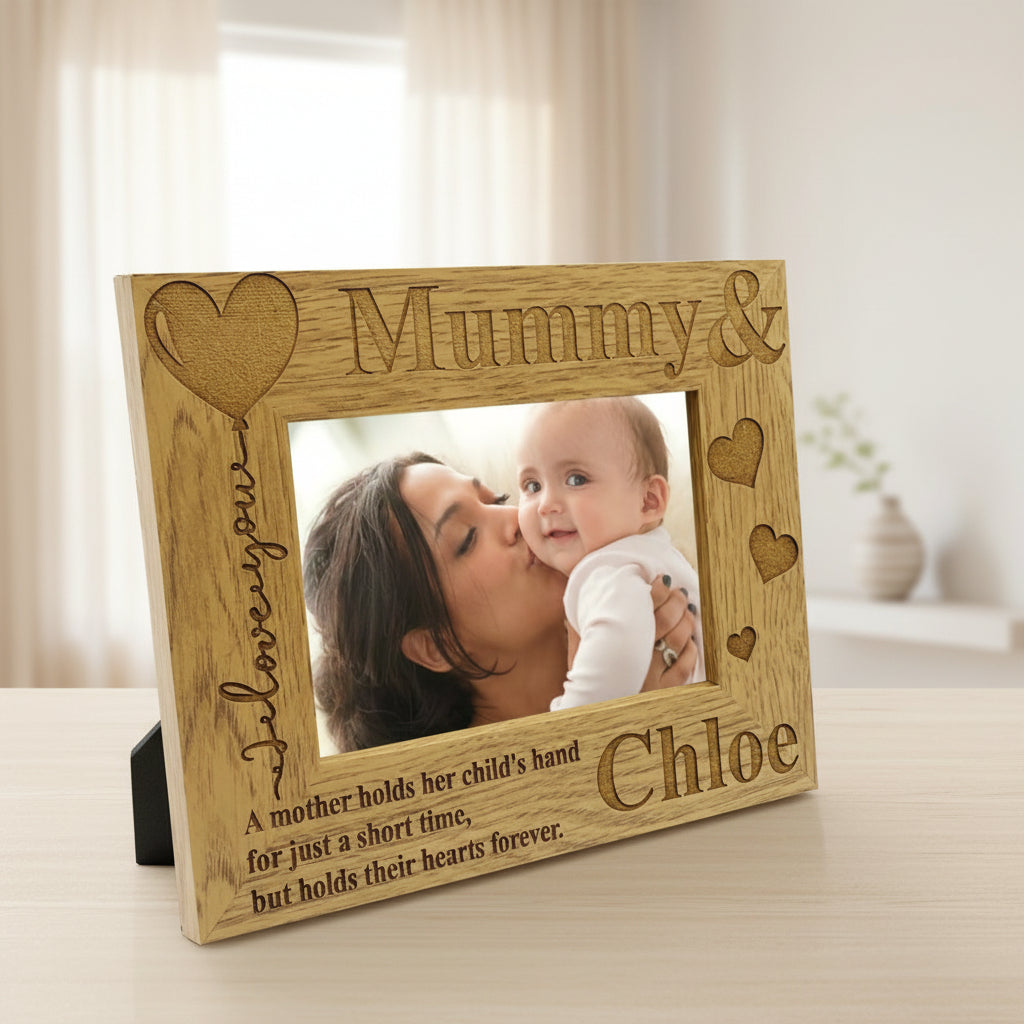 Personalised Mummy and Son or Daughter Heart Wooden Photo Frame – Heartfelt Gift Celebrate the special bond...