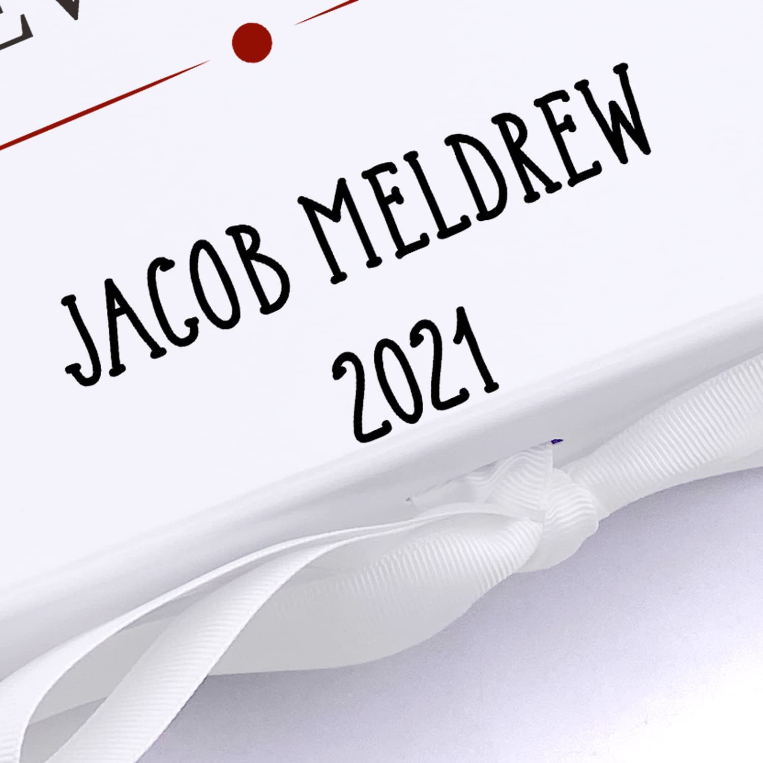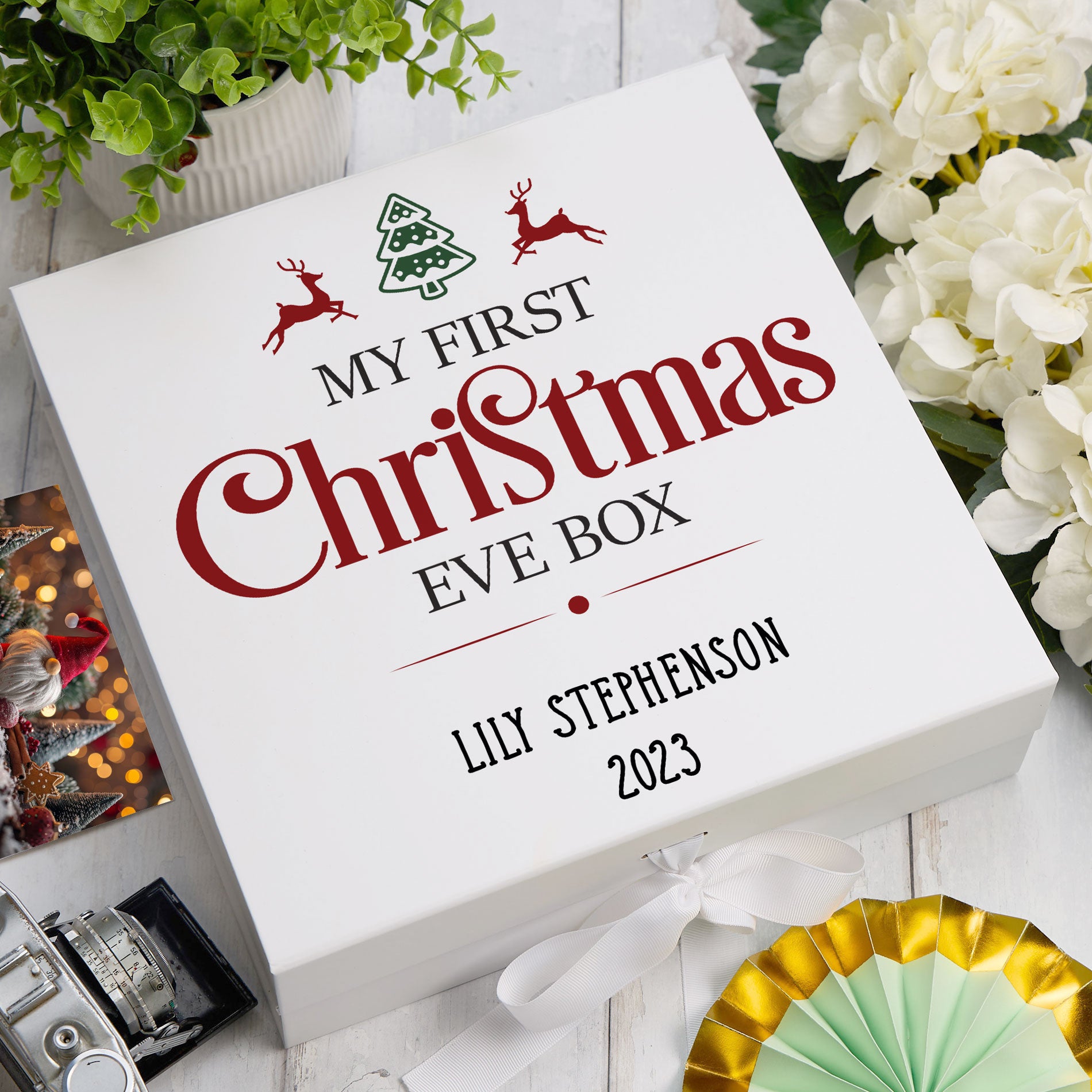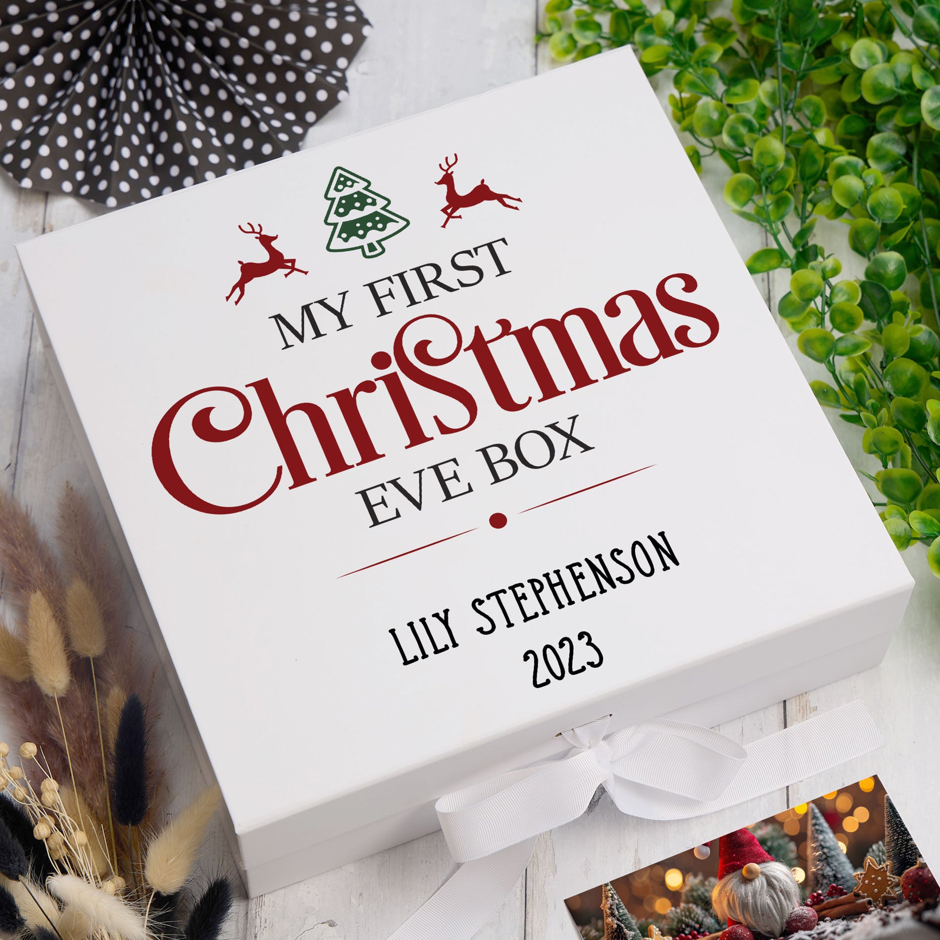 Gorgeous luxury personalised printed rigid card gift box, with lid that has a magnetic closure and is tied with a grosgrain ribbon. The personalised print on this luxury box is raised slightly to create a stunning embossed-style feature. The box itself is sturdy and durable - made from a luxurious 1200gsm white matt laminated rigid board.