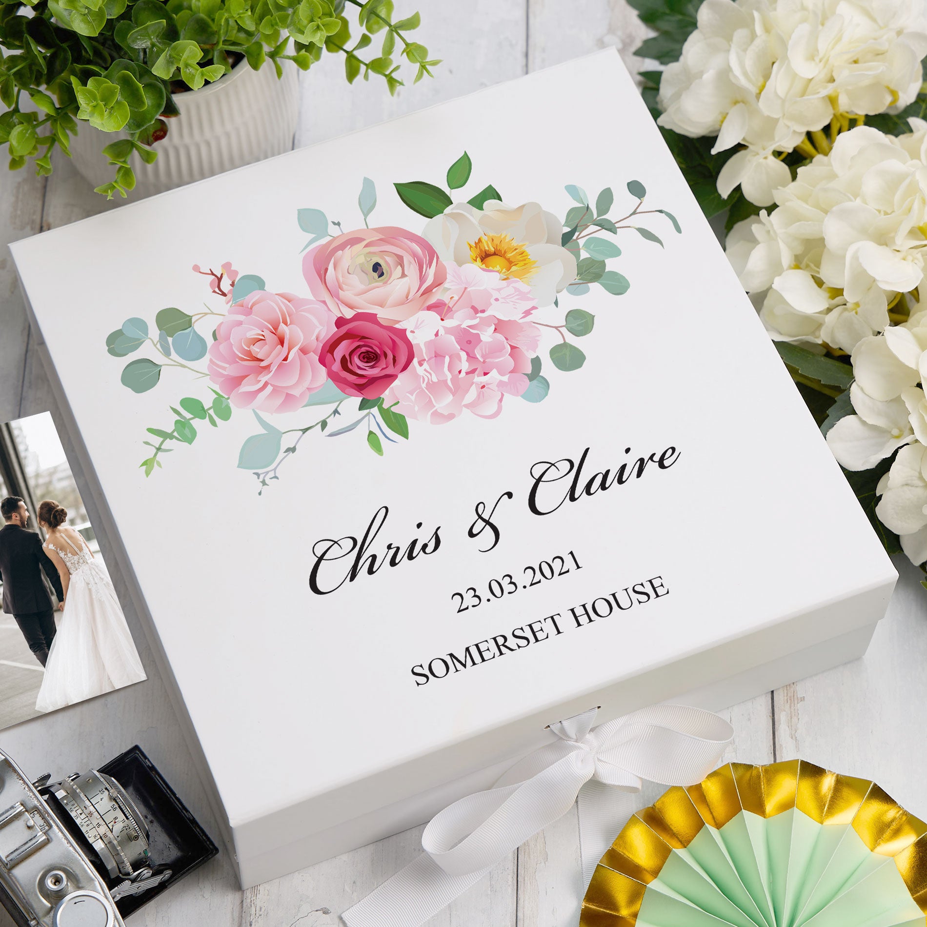 Celebrate your special day with the ukgiftstoreonline Personalised Pink Flower Wedding Keepsake Memory Box. This elegant box, adorned with delicate pink floral designs, offers a charming space to store treasured wedding mementos like invitations, photographs, and keepsakes. Personalise it with your names and wedding date to create a unique, lasting memory piece. Crafted with attention to detail, this memory box blends sentimental value with sophisticated style, making it a perfect keepsake that preserves the magic of your wedding day for years to come. Ideal as a thoughtful gift or a cherished personal keepsake.