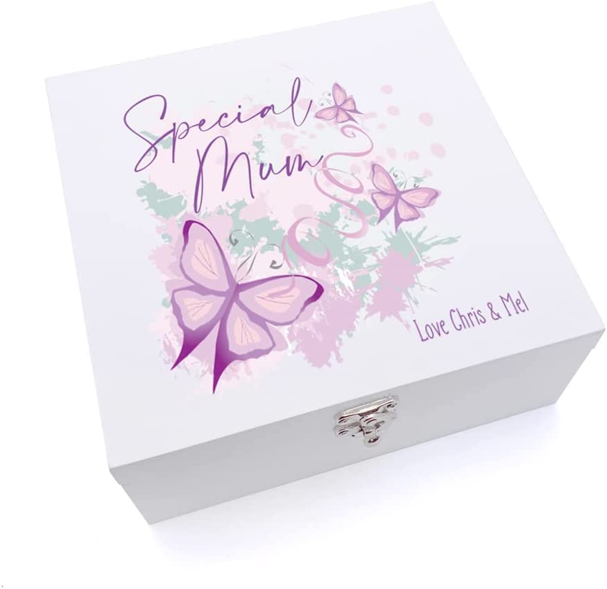 A contemporary luxury white wooden memory box, personalised for the occasion If you are looking for an extra special gift then these keepsake boxes are sure to be cherished and filled with mementos along the years. Perfect to fill with gifts, photos and other bits and bobs. Made from a white coated wood with your details printed directly onto the lid using the latest printing technology. The inside of the box has a natural wood finish. The boxes have beautiful chrome plated metal hinges and clasp to hold shut ensuring they last for years. Dimensions: H9 x W30 x D30 cm